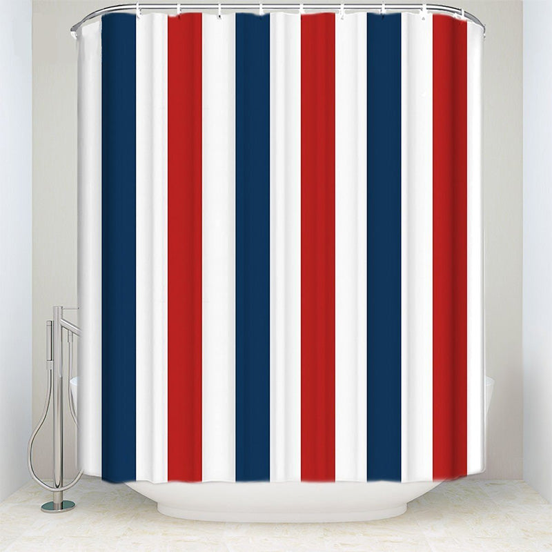 Ervaar elegantie en functionaliteit met onze Douchegordijn met blauw wit rode strepen. Ontworpen om je badkamer te verfraaien en een aangename douche-ervaring te bieden, combineert het verfijnd design met dagelijks gebruiksgemak.
