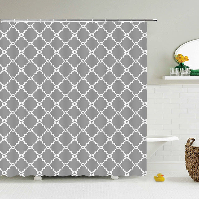 Verrijk je badkamer met een Douchegordijn met grijs Marokkaans patroon