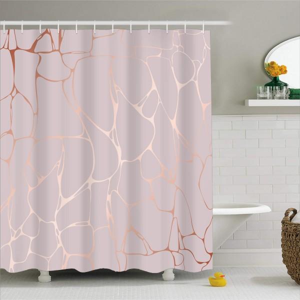 Transformeer je badkamer in een oase van stijl en rust met ons prachtige douchegordijn. Dit unieke douchegordijn met koperkleurig marmer design voegt direct een vleugje luxe toe aan elke doucheruimte. Stel je voor hoe het zachte, lichtroze doek met de glanzende, organische koperkleurige aders een serene sfeer creëert, perfect om de dag ontspannen te beginnen of af te sluiten. Het is meer dan alleen een functioneel item; het is een statement dat de elegantie van een modern interieur combineert met de tijdloze schoonheid van natuurlijke patronen. Dit douchegordijn is ontworpen om zowel het oog te strelen als praktisch te zijn, en belooft een echte blikvanger te worden in jouw persoonlijke spa.