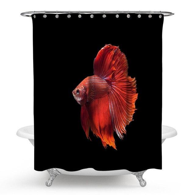 Ervaar elegantie en functionaliteit met onze Douchegordijn met rode Betta vis. Ontworpen om je badkamer te verfraaien en een aangename douche-ervaring te bieden, combineert het verfijnd design met dagelijks gebruiksgemak.