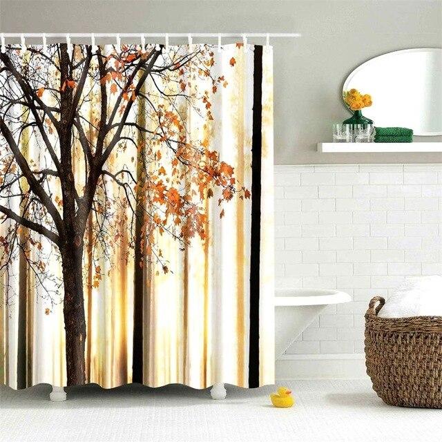 Verander je badkamer met een Douchegordijn met sfeervol herfstbos print