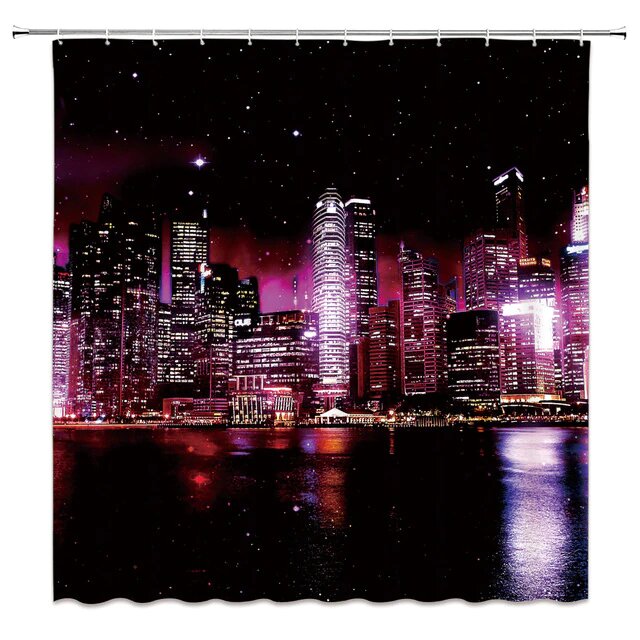 Transformeer je badkamer in een bruisende metropool bij nacht met ons prachtige douchegordijn met skyline bij nacht. Stel je voor dat je elke ochtend of avond onder de douche stapt en wordt omringd door de glinsterende lichten van een majestueuze stad, weerspiegeld in het water onder een sterrenhemel. Dit douchegordijn is niet zomaar een functioneel item; het is een statement dat sfeer en stijl toevoegt aan jouw persoonlijke wellnessruimte. Perfect voor iedereen die droomt van stedelijke avonturen of gewoon wil ontsnappen aan de alledaagse sleur en zichzelf wil onderdompelen in een betoverend uitzicht.