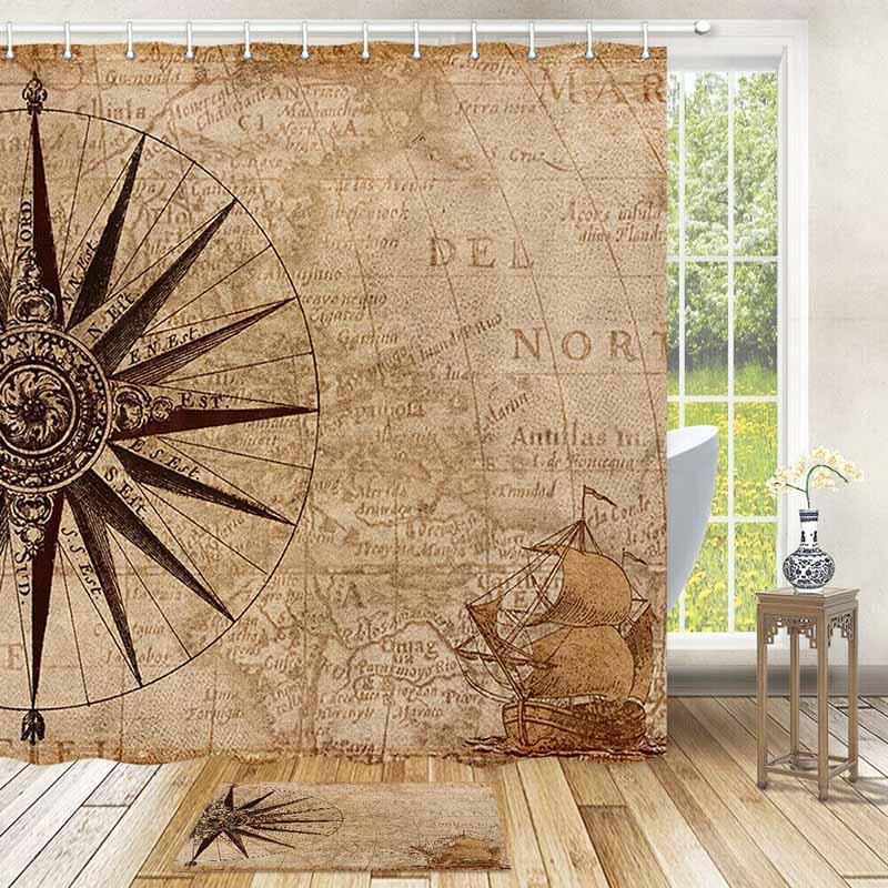 Breng een Unieke Sfeer met je Nautisch Douchegordijn met Vintage Kompas