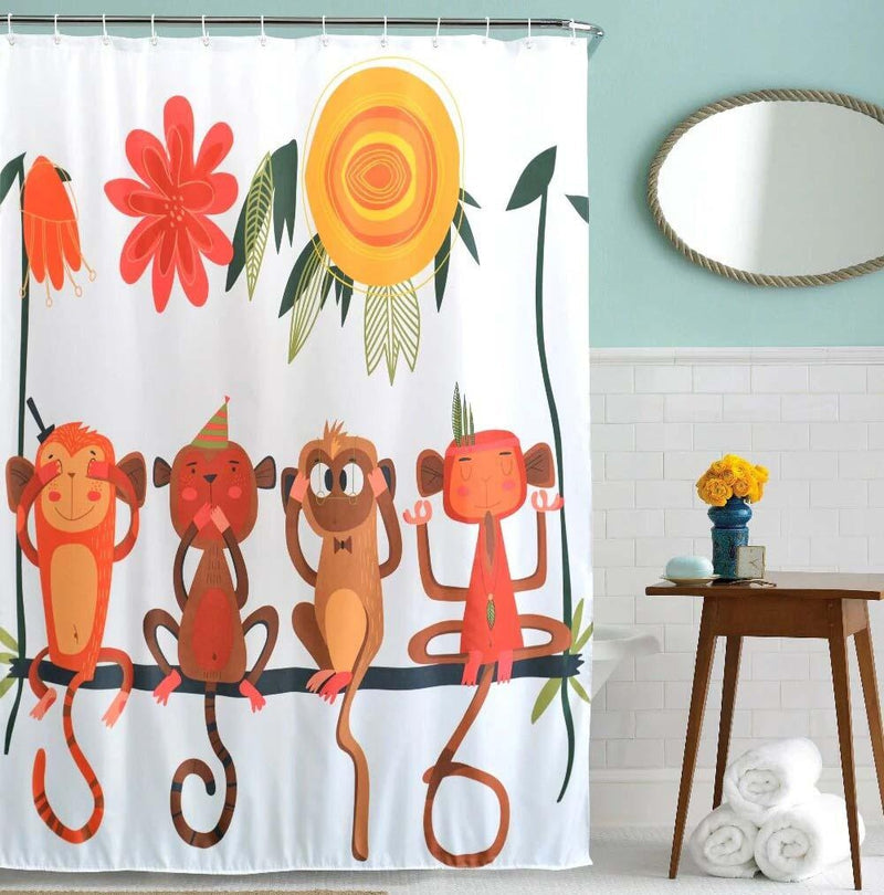 Ervaar elegantie en functionaliteit met onze Speels douchegordijn met grappige aapjes. Ontworpen om je badkamer te verfraaien en een aangename douche-ervaring te bieden, combineert het verfijnd design met dagelijks gebruiksgemak.