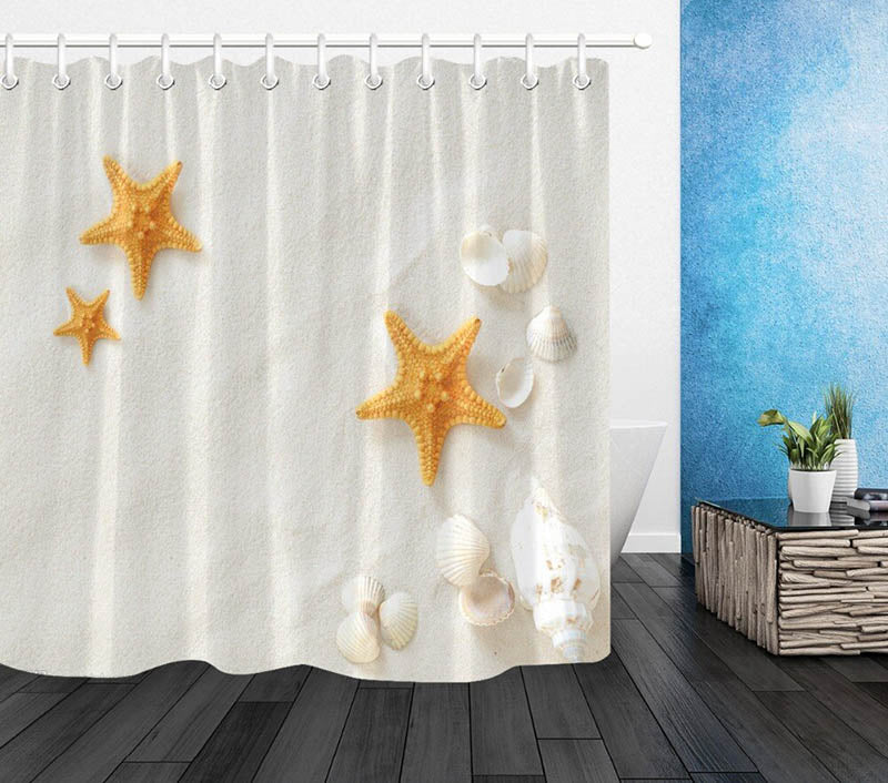 Droom weg bij het rustgevende geluid van de oceaan, elke keer dat je de badkamer instapt! Dit prachtige wit douchegordijn met schelpen en zeesterren tovert jouw badkamer om tot een serene strandbestemming. Met zijn lichte zandkleurige achtergrond en charmante afbeeldingen van gele zeesterren en diverse witte schelpen, brengt dit douchegordijn direct een ontspannen, maritieme sfeer in huis. Perfect voor iedereen die houdt van een frisse, natuurlijke uitstraling en zich graag laat inspireren door de schoonheid van de zee.